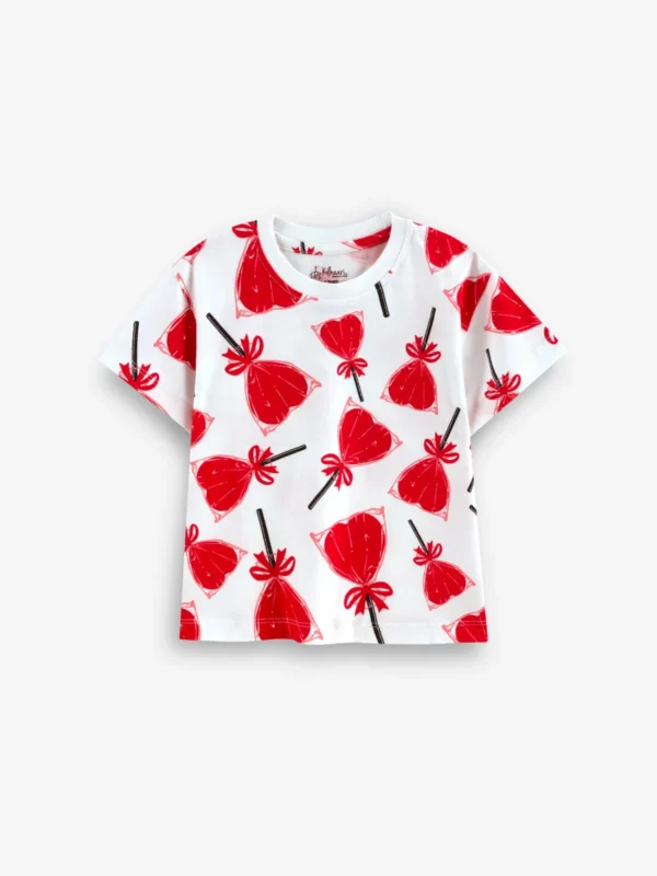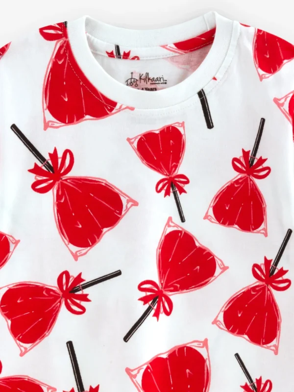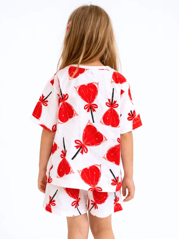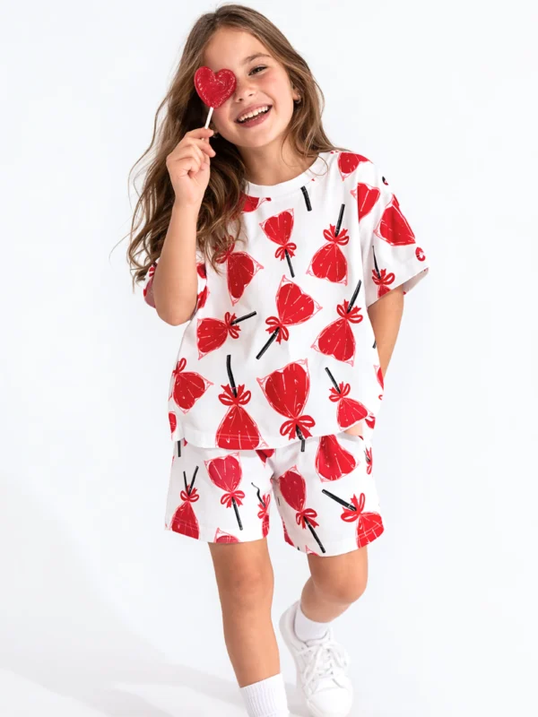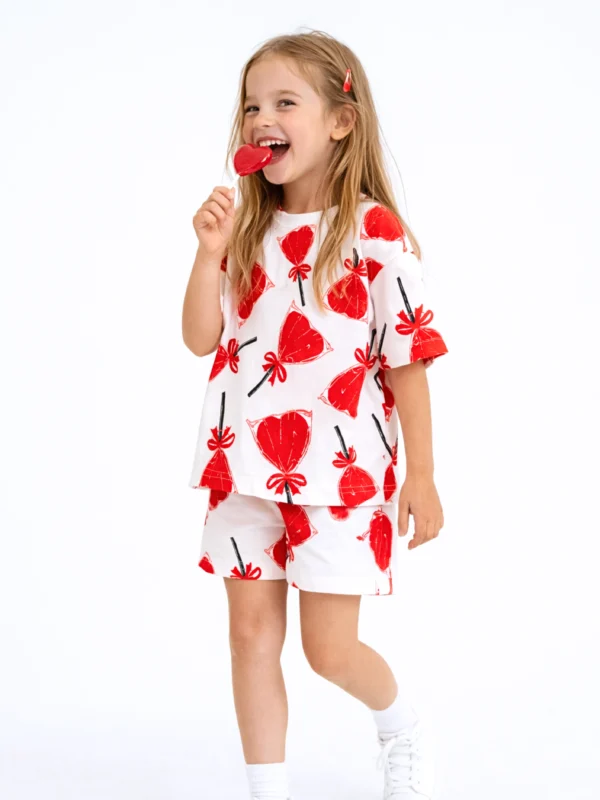 A cute mix of hearts and candy prints, made for little ones who love fun outfits. Soft cotton keeps it comfy,