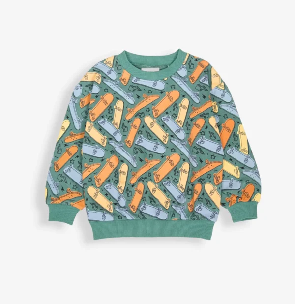 The Little Skater Sweatshirt is designed for everyday winter wear with a fun, playful skateboard print kids love.