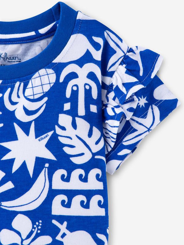 ABSTRACT PARADISE PREMIUM RUFFLE SLEEVE DRESS